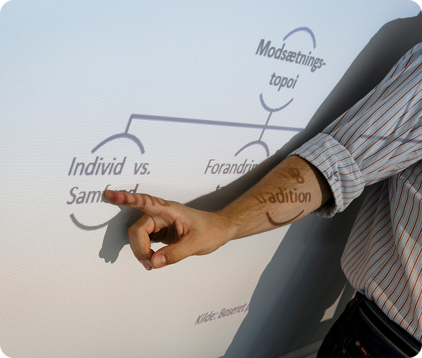 We tailor the format to suit your needs and reality – from a short inspirational presentation to an actual learning process. Meeting leadership can be done as one day or as two days – depending on the amount of exercises and whether facilitation, argumentation and presentations are included in the programme.