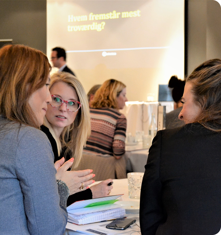 We have years of experience delivering courses for course catalogues. Both more general tool courses such as presentation techniques, meeting leadership, argumentation, storytelling and writing courses. But also specially designed courses for your specific communication situation – sometimes delivered together with internal trainers, sometimes only by us, but always adjusted to your specific reality.